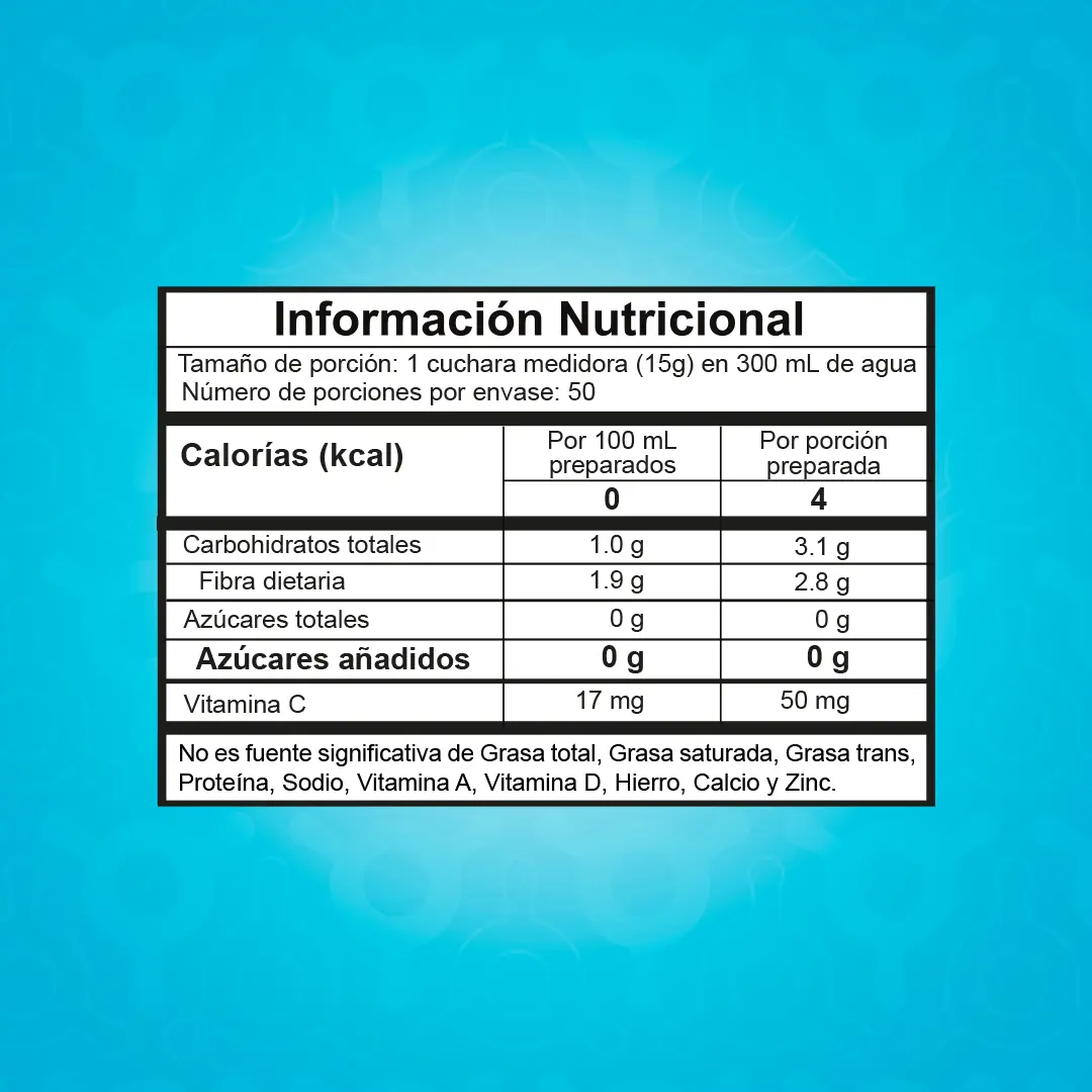 Modo de Preparación Mezclar 1 cuchara medidora (15g) incluida en el empaque del producto en 1.5 vasos de agua (300 mL), agítese hasta obtener un producto homogéneo. Consúmase una vez preparado.
