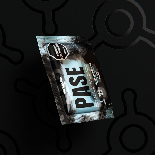Pase es una mezcla en polvo para preparar bebida energizante, con un delicioso y refrescante sabor a (Blue Raspberry Ice), por sus componentes de cafeína, extracto vegetal de té verde y extracto de naranja amarga, es una combinación que logra mejorar tus niveles de energía y con un plan de entrenamiento adecuado ayudara a obtener tus objetivos en la medida de tu composición corporal.